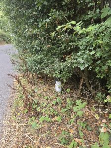 To top it all off there is a row of highway bollards with reflectors buried along the centre of the hedgerow, which were presumably originally installed to demark the edge of the highway, especially during the night. I am told by one of the Parish Councillors that a previous owner of the house adjacent used to mow the grass verge between the bollards, which means it would have provided a safe haven for people walking along the road if they needed to tuck in away from passing traffic.